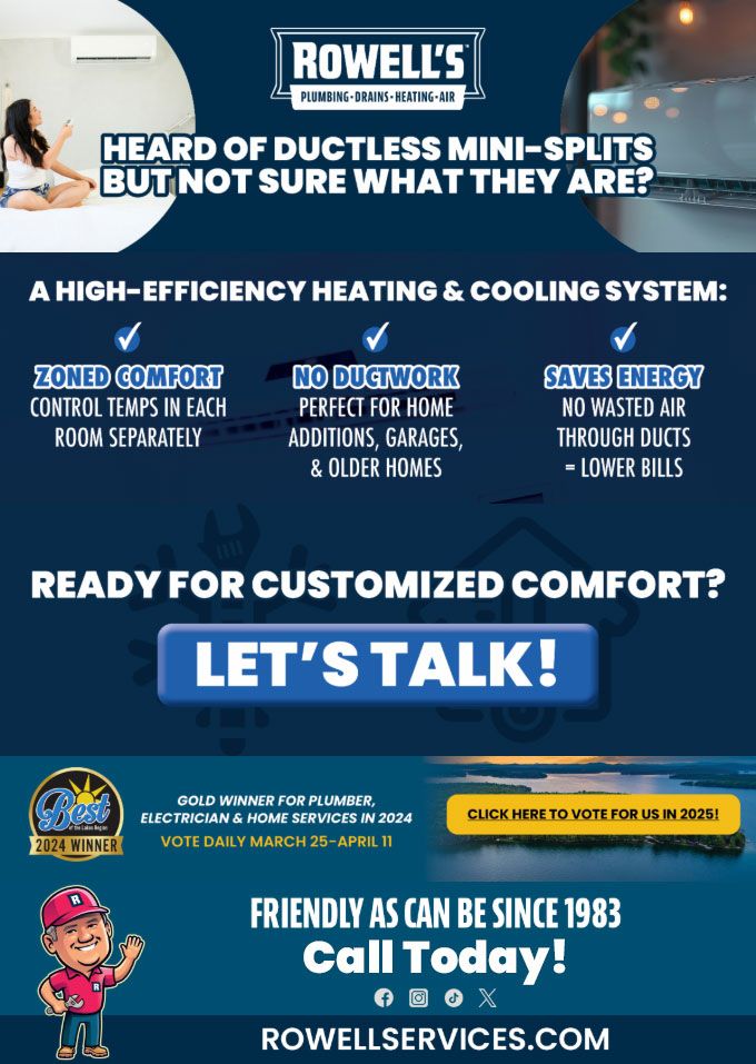 "Friendly As Can Be Since 1983!" When you need help with your plumbing, drains, heating, cooling or electrical in Bedford, you can always rely on Rowell's Services! Call us now or book online!